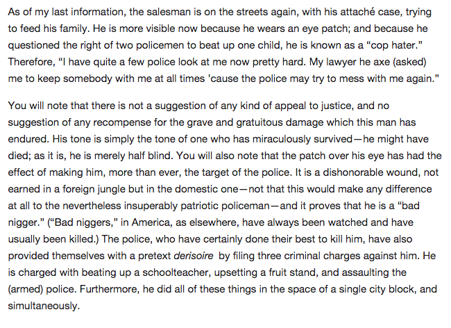 “The law is meant to be my servant and not my master, still less my torturer and my murderer.” “A Report from Occupied Territory,” James Baldwin (The Nation, July 11, 1966)