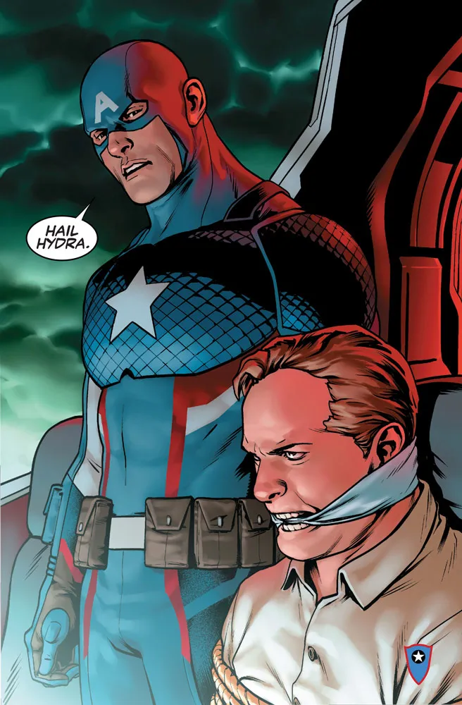 The goal, of course, is to shock readers into buying the next issue, and presumably that’s what comics scribe Nick Spencer and his colleagues at Marvel Comics hoped to do when they executed a final-page revelation in last Wednesday’s Captain America: Steve Rogers No. 1: We learned that Cap is actually … evil? The Star-Spangled Avenger uttered the words, “Hail Hydra,” the fascistic slogan of longtime villain collective Hydra. Say it ain’t so!