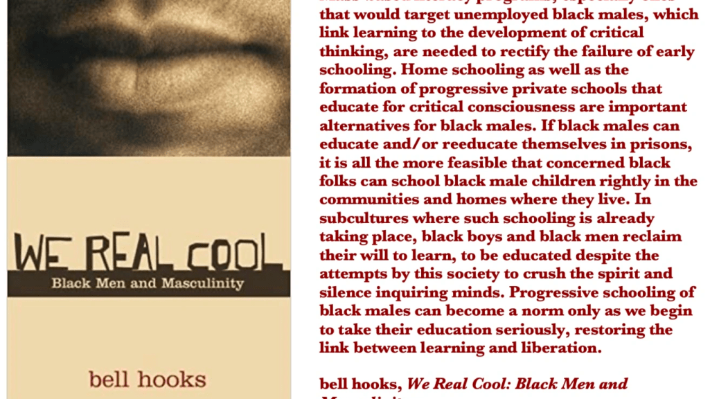 “The curiosity that may be deemed a sign of genius in a white male child is viewed as trouble making when expressed by black boys,” observes bell hooks in Chapter 3 of her We Real Cool: Black Men and Masculinity.