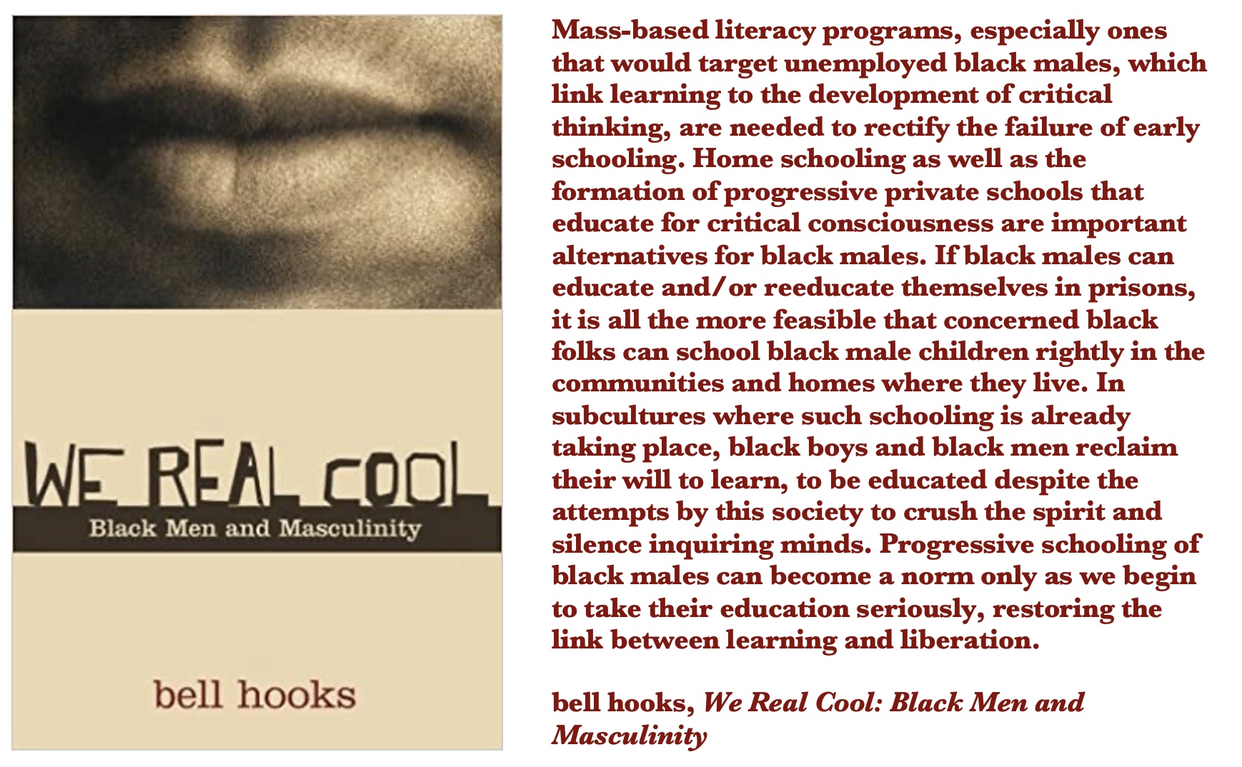Once I moved beyond my home and community—college—I was then liberated by reading Black authors assigned and recommended by wonderful professors, again a context that respected intellectual freedom and my mind.