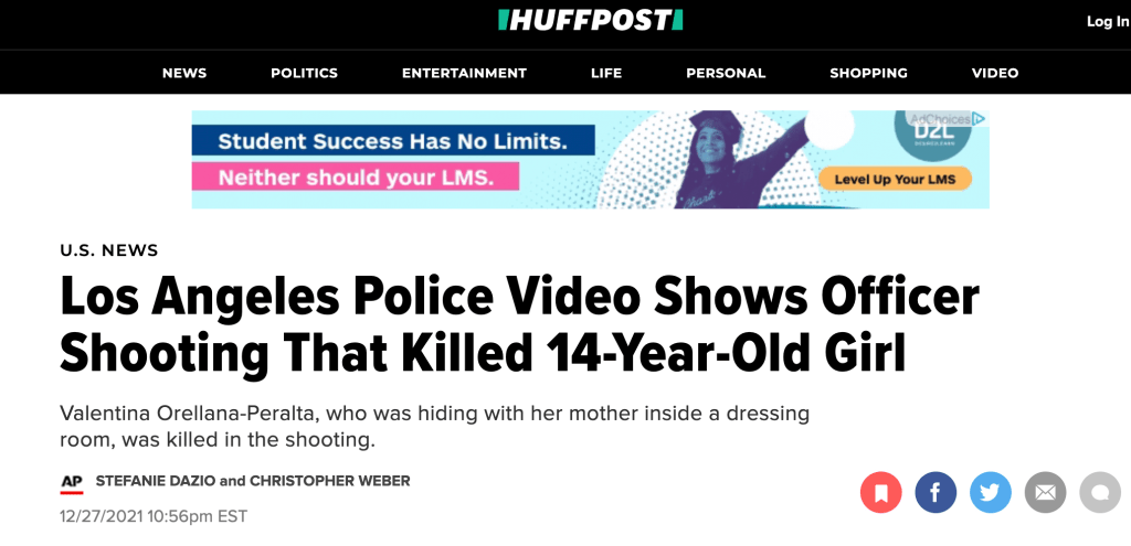 Los Angeles Police Video Shows Officer Shooting That Killed 14-Year-Old Girl