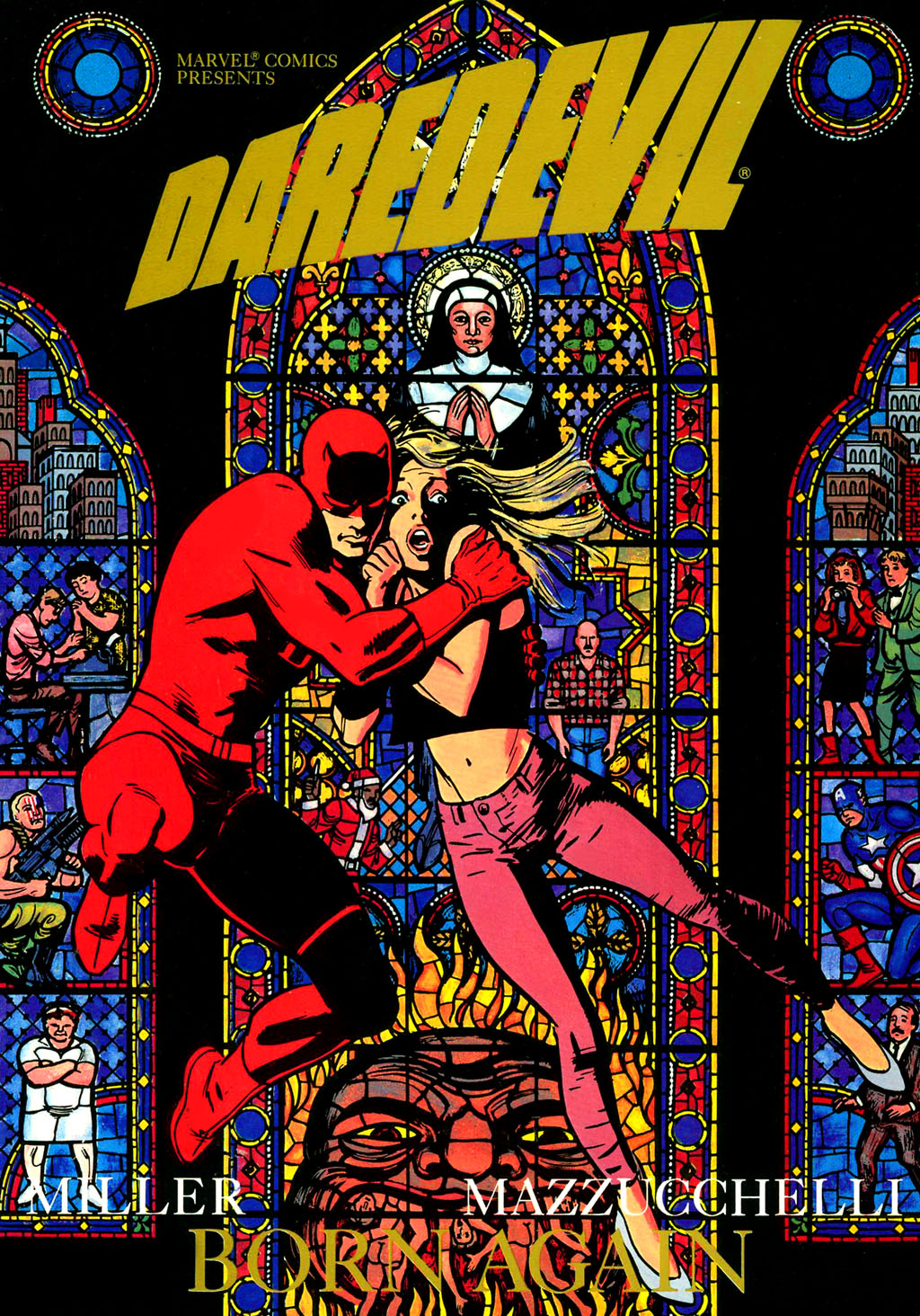 The extent to which Murdock’s religiousness features in any given story—and indeed, whether it features at all—depends of course on the artists involved. Some center other elements of the Daredevil mythos (secret ninja societies, for instance). Most of the time Catholicism seems more like stained-glass window dressing, offering a thematic or aesthetic palette without much depth: fistfights in front of altars, vaguely religious themes, jokes about Catholic guilt. (p. 113)