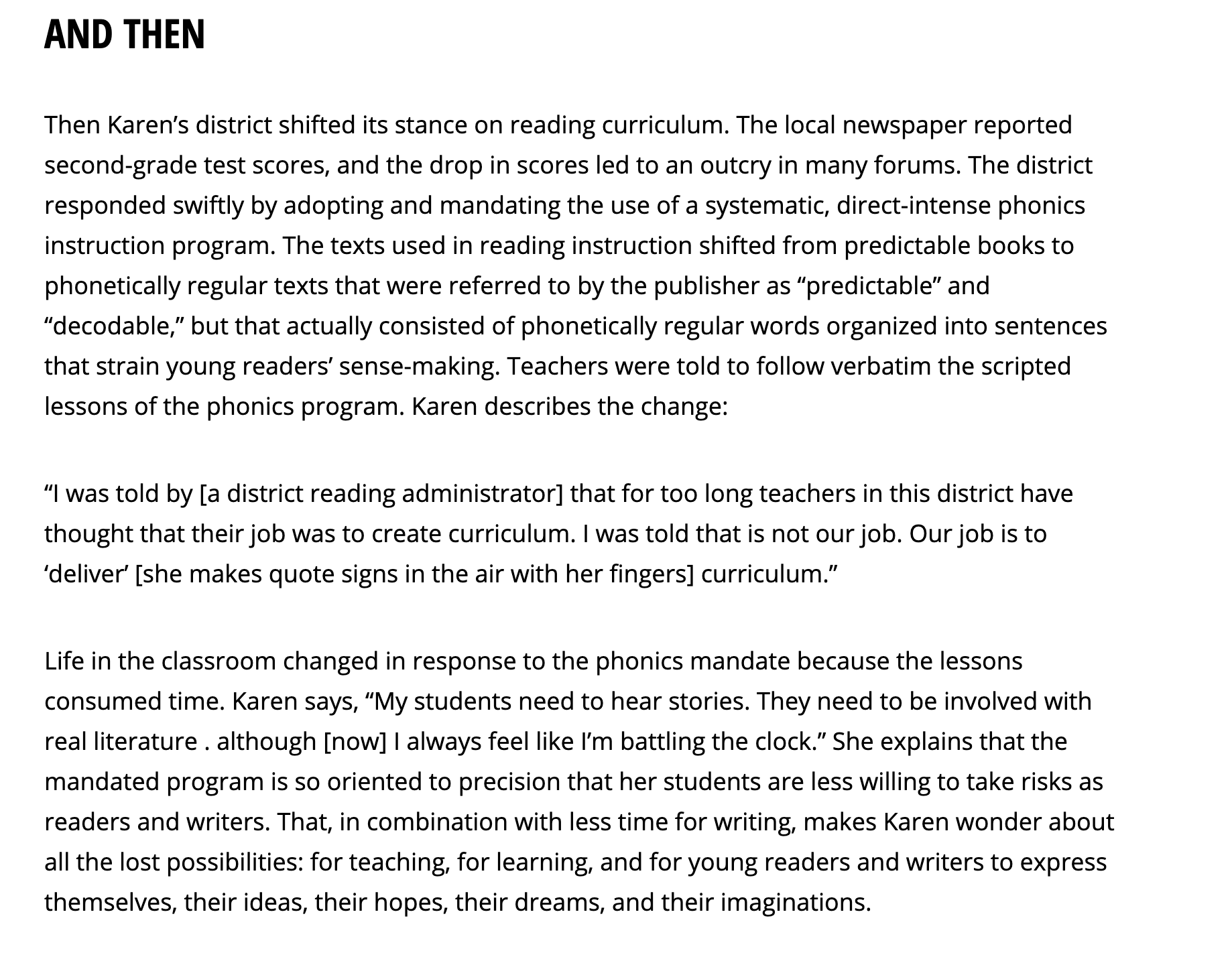 The media has now spoken directly into that conservative machine with the “science of reading” (SOR) movement that follows the tired and destructive pattern begun under Reagan in the 1980s.