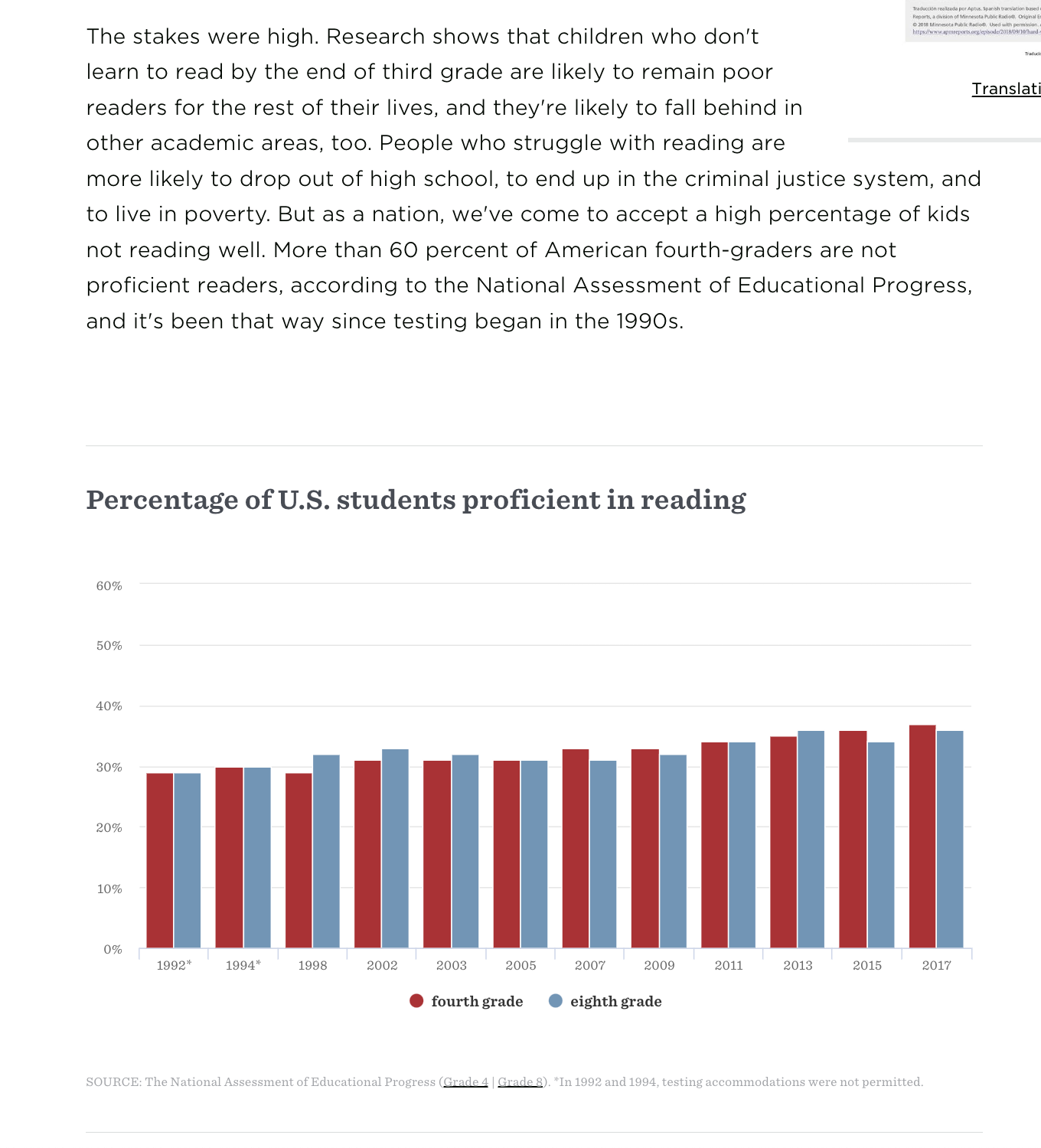 Doubt this claim? Well, try the NYT and Nicholas Kristof: Two-Thirds of Kids Struggle to Read, and We Know How to Fix It.