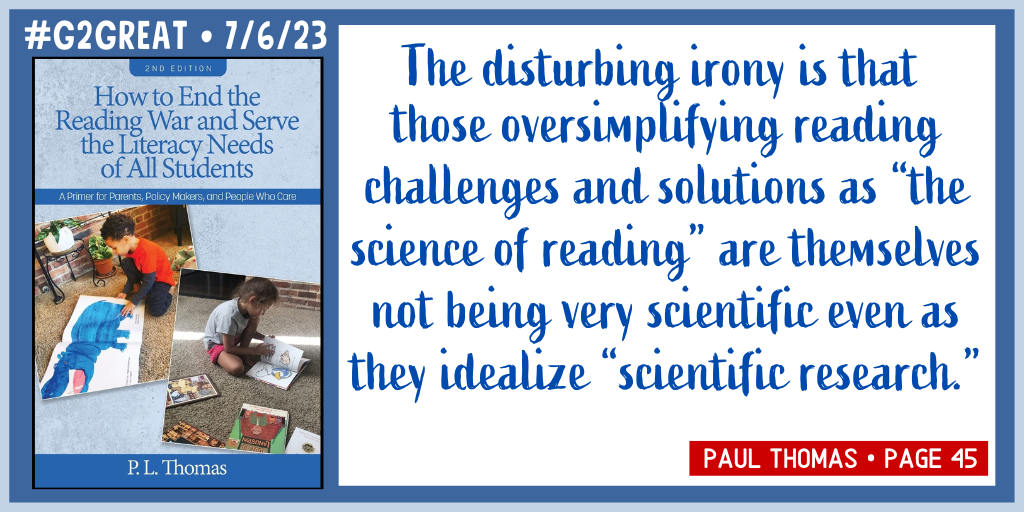 Currently, the misinformation campaign, ironically, related to education is the “science of reading” (SOR) movement that repeatedly misrepresents NAEP data, makes claims that have no scientific evidence (relying on anecdote [2]), and repeatedly relies on think tank “reports” (NCTQ, for example) that are also not scientific [3].