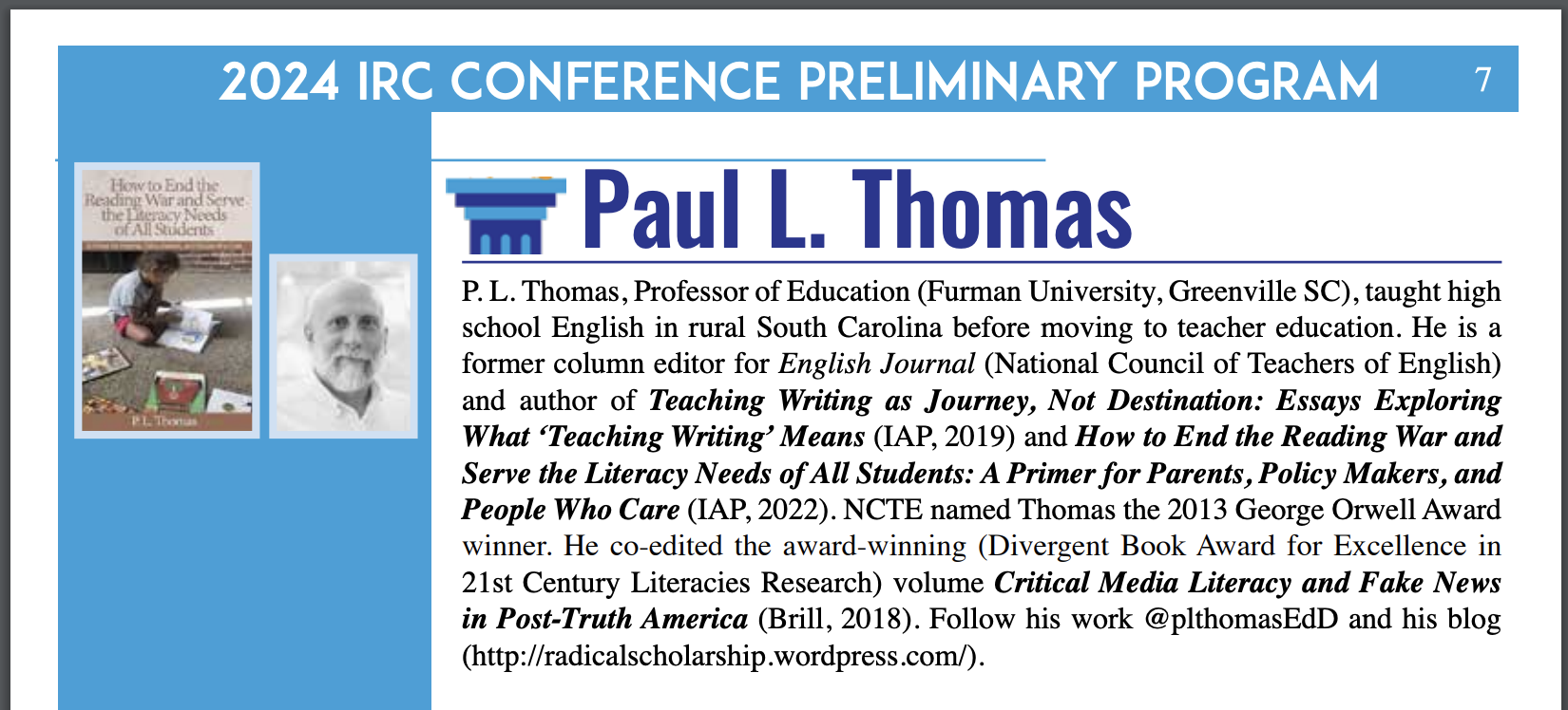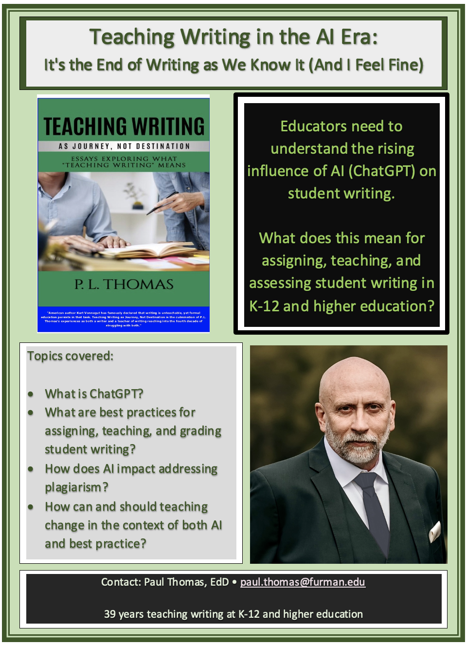 P.L. Thomas, Professor of Education, Furman University