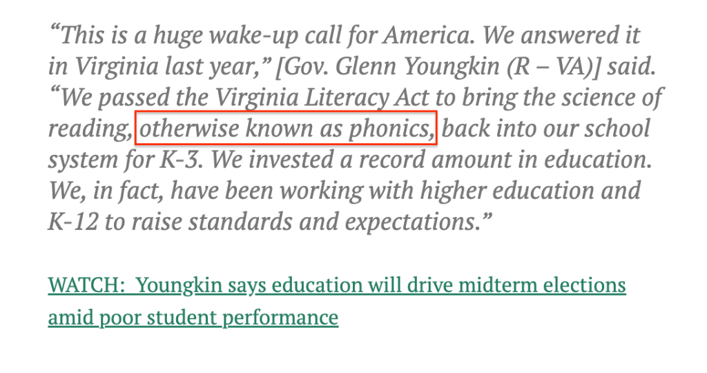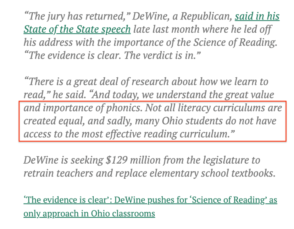 Now let’s note how these misleading and oversimplified claims about reading science have manifested themselves in political rhetoric and then state legislation: