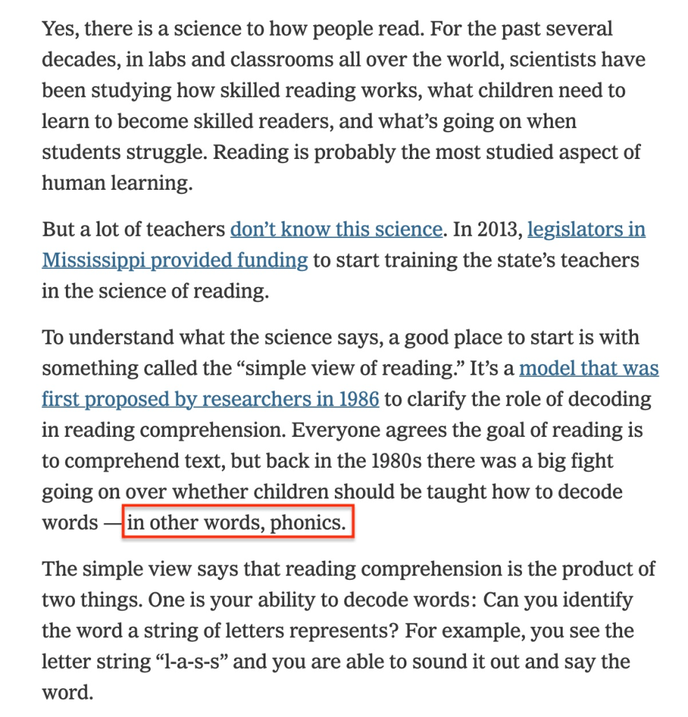 But that same mantra is central to the claims made by The Reading League, likely the leading organization promoting SOR: