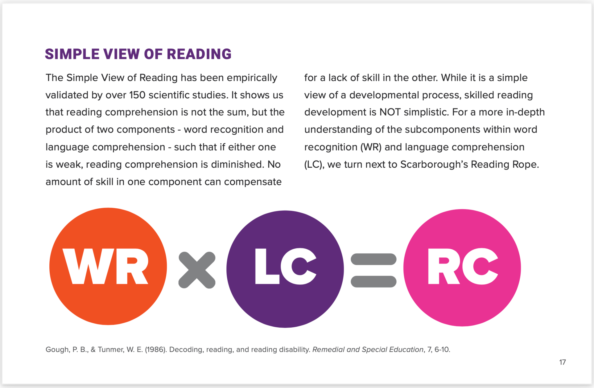 First, Hanford in her journalism has repeated that SOR is “settled science” called the simple view of reading (SVR):