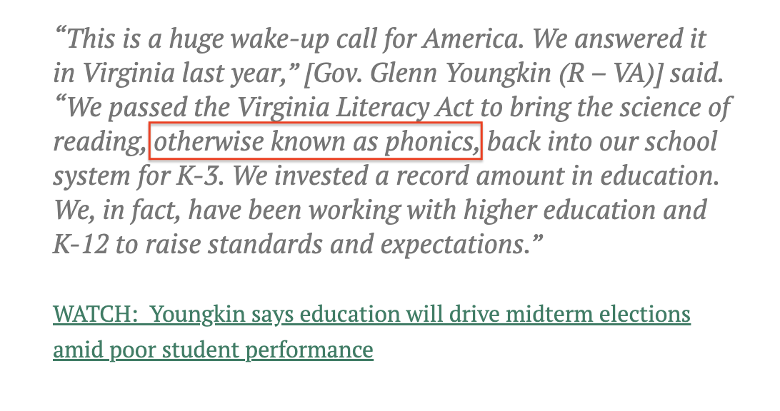 Now let’s note how these misleading and oversimplified claims about reading science have manifested themselves in political rhetoric and then state legislation: