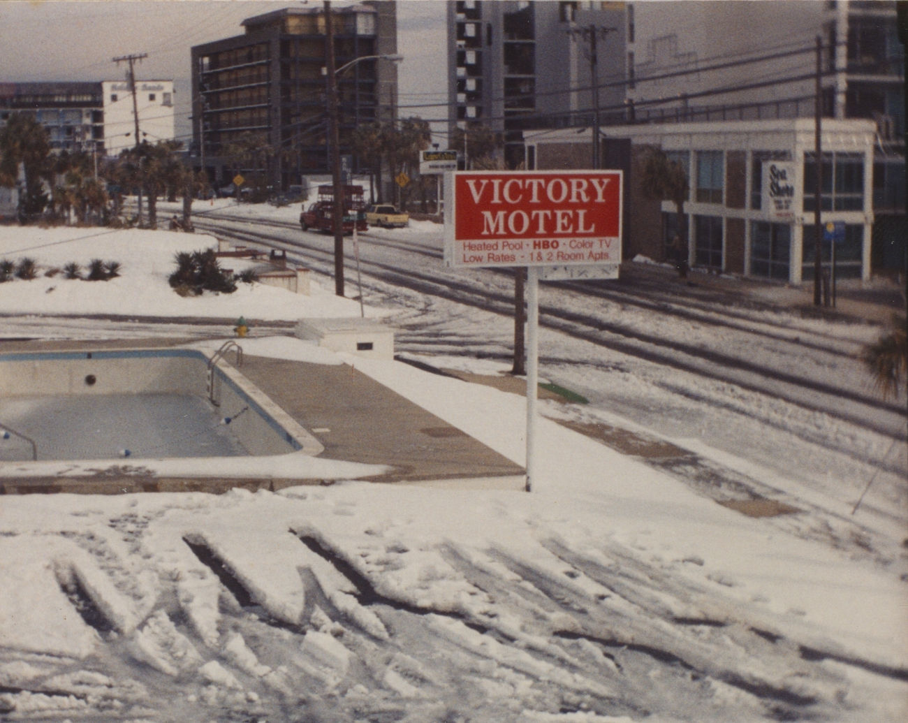 Myrtle Beach snow is a rarity but we have many, many pictures of being there in the snow—an ironically warm reminder for me of the off-season trips of our working-class families who always felt drawn to the ocean.