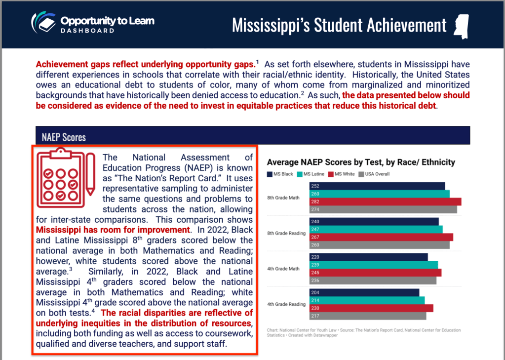 For both MS and LA, we must acknowledge the significant and robust systemic (out-of-school) disadvantages minoritized and impoverished students continue to face in both states: