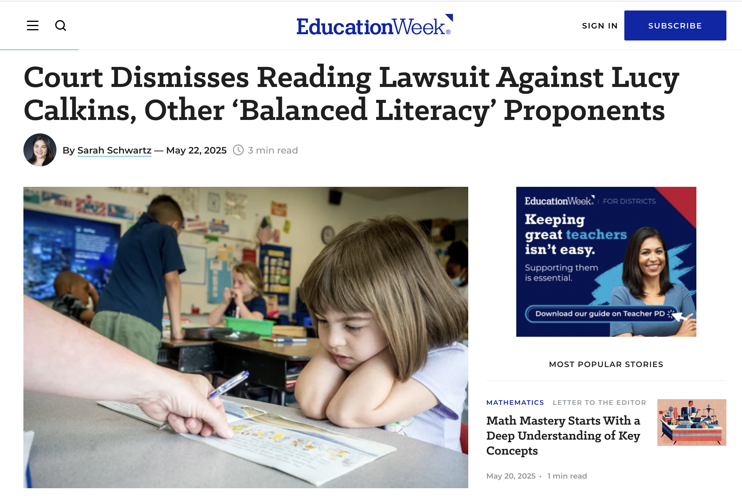 A judge in Massachusetts rejected a frivolous lawsuit grounded in the story being sold that a reading crisis was caused by a few reading programs and the scapegoat of the moment, balanced literacy (and three cueing).