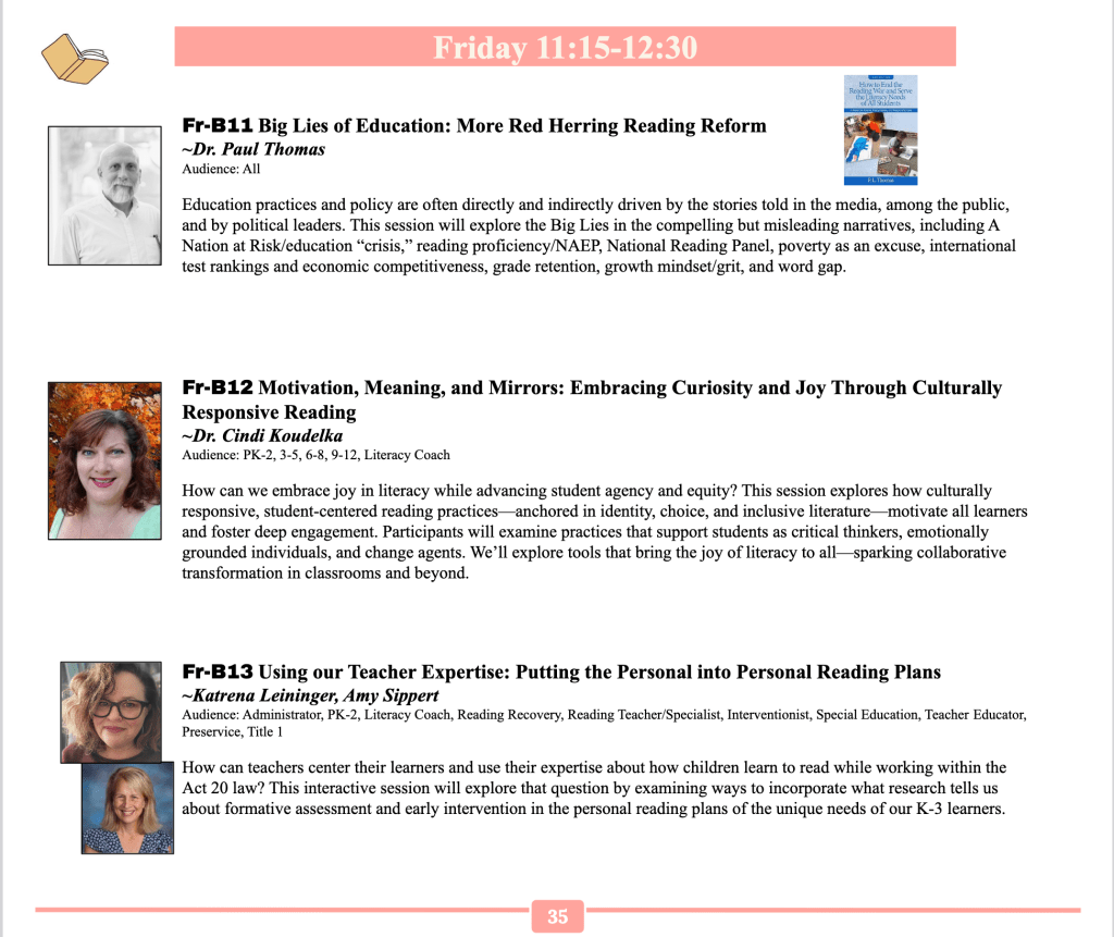 Thomas, P.L. (2023). The “Science of Reading,” education faddism, and the failure to honor the intellectual lives of all children: On deficit lenses and ignoring class and race stereotyping. Voices in the Middle, 30(3), 17-21. https://publicationsncte.org/content/journals/10.58680/vm202332439