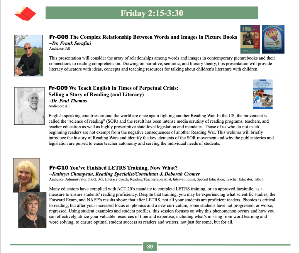 English-speaking countries around the world are once again fighting another Reading War. In the US, the movement is called the “science of reading” (SOR) and the result has been intense media scrutiny of reading programs, teachers, and teacher education as well as highly prescriptive state-level legislation and mandates. Those of us who do not teach beginning readers are not exempt from the negative consequences of another Reading War. This webinar will briefly introduce the history of Reading Wars and identify the key elements of the SOR movement and why the public stories and legislation are poised to erase teacher autonomy and serving the individual needs of students.