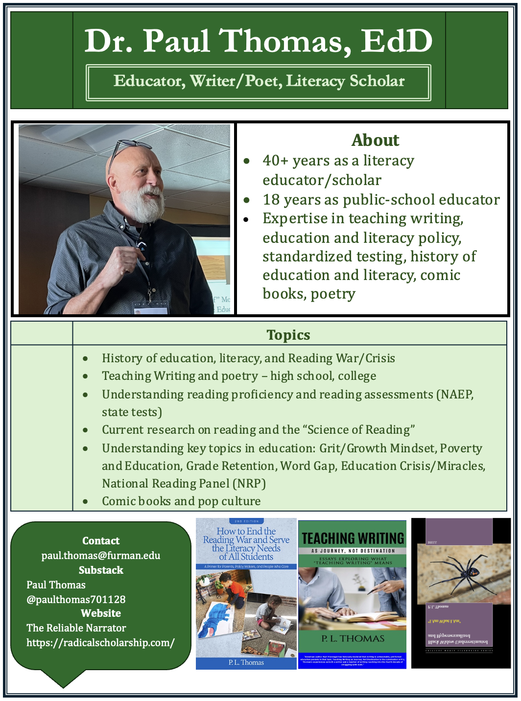 Paul Thomas: Presentations, Professional Development, Webinars, and Consulting
