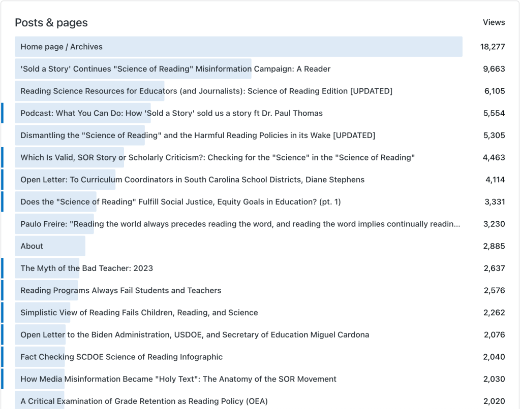 In 2023, for example, my open-access work on grade retention contributed to removing grade retention in Ohio. My primary work on the “science of reading” has maintained an audience with much less satisfying outcomes.