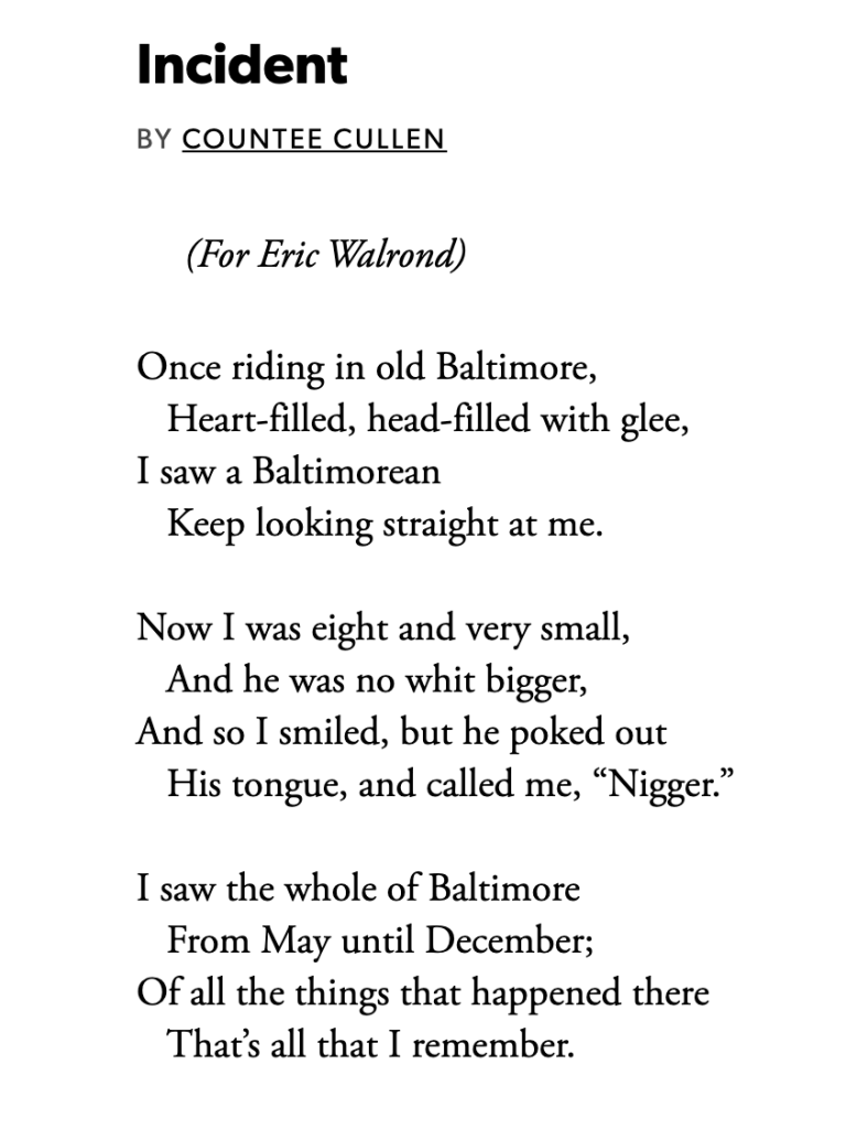 “Incident,” Countee Cullen (b. 30 May 1903)