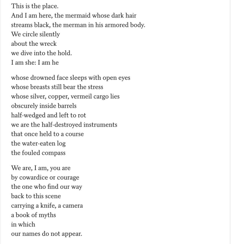 “Diving into the Wreck,” Adrienne Rich (b. 16 May 1929)
