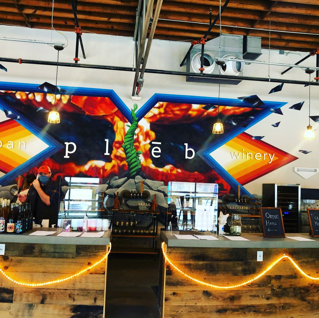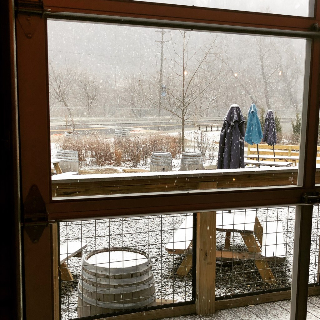 Also near West Asheville at one end of the River Art District (RAD) in Asheville, Pleb Urban Winery lives very warmly in my heart. Our last stop on my 60th birthday in 2021 was at their beautiful facility where it began to snow.