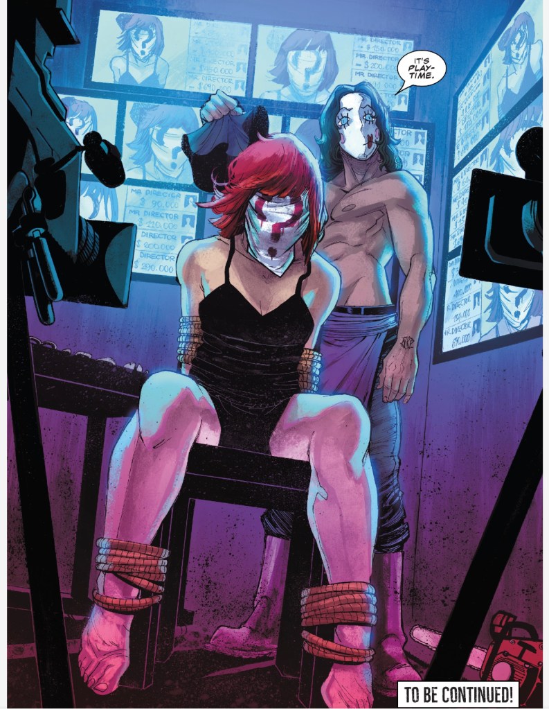 However, after Natasha takes on Madame Masque’s identity to infiltrate the child trafficking ring, issue 3 slips right back into old habits—Natasha exposed, and bound: