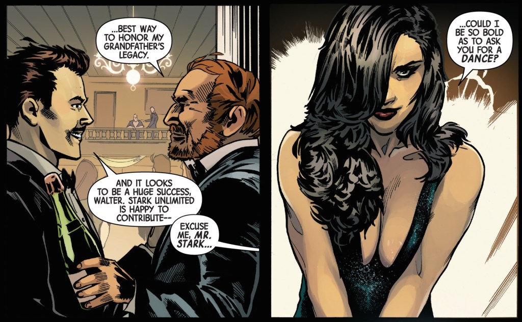 Web, regretfully, immediately introduces Tony Stark, and of course, Natasha’s cleavage: