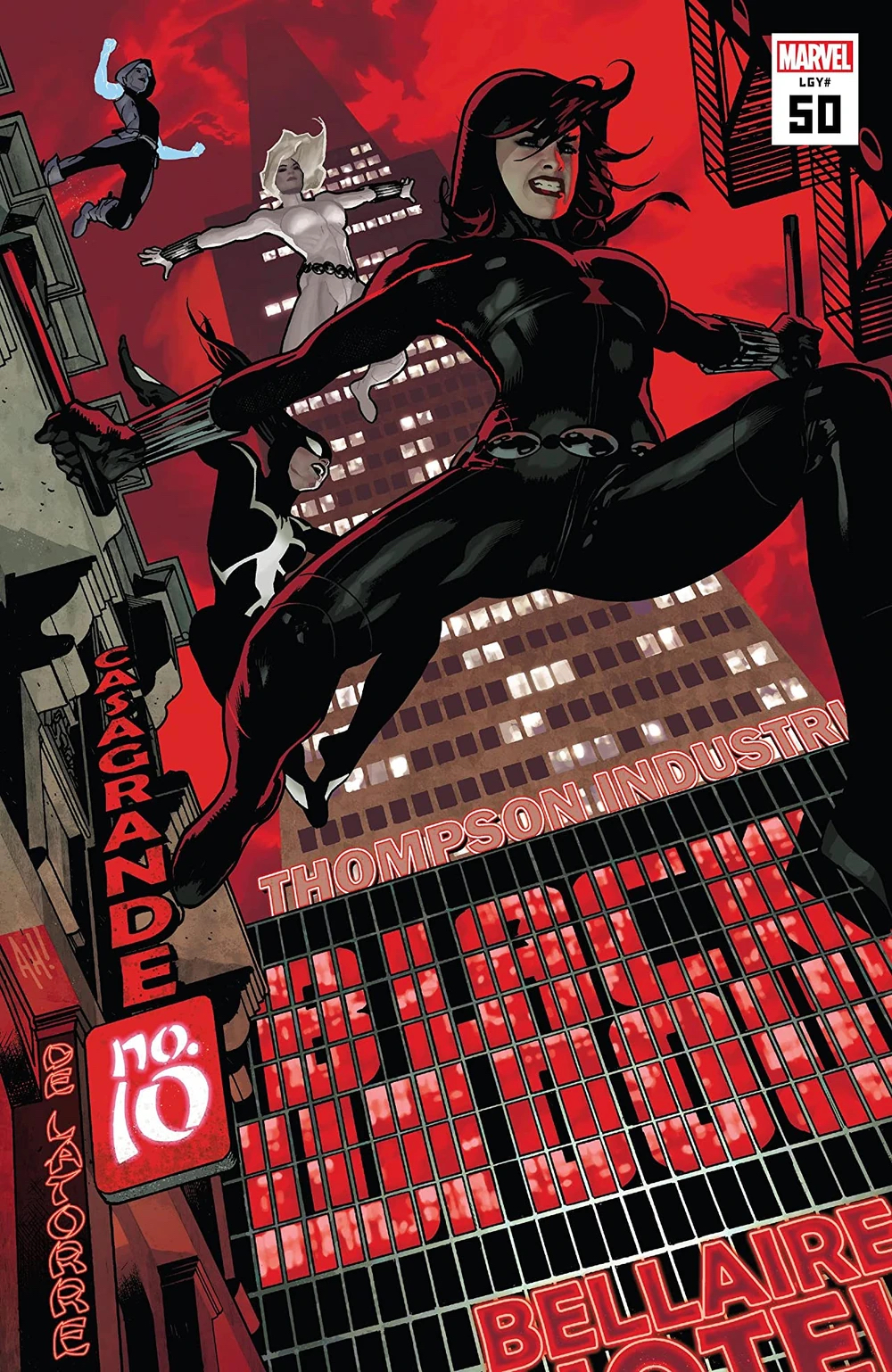 Adam Hughs offers another visually dynamic cover for legacy issue 50, a fitting tribute to Black Widow as a underestimated and hypersexualized character in the Marvel Universe.