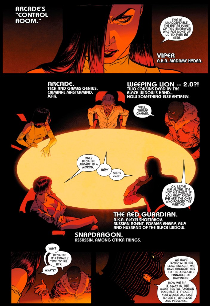 Gradually, a gallery of villains are revealed in issue 3 as Black Widow continues to resurface and then forms her own group, another of the many gifts offered by Thompson’s writing.