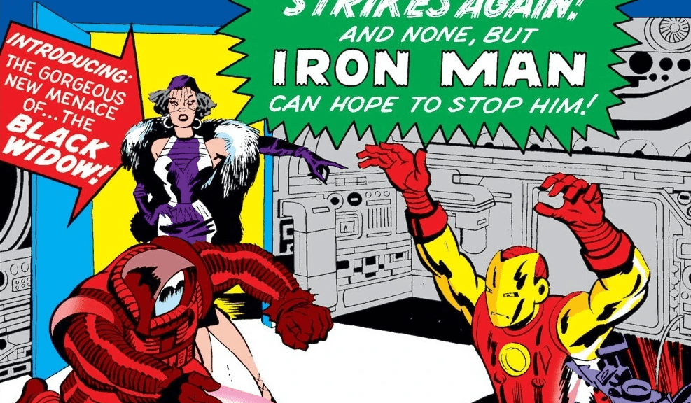 Black Widow first appeared in 1964, nearly unrecognizable to today’s fans as a foil to Iron Man in Tales of Suspense 52. This origin portrays Black Widow in a different color costume on the cover than in the interior, but she is mostly a one-dimensional Cold War temptress.
