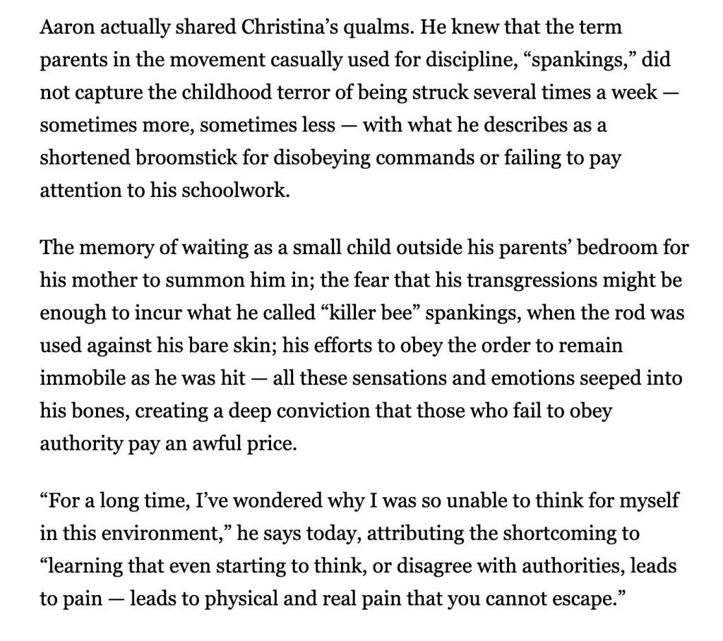 My point is that I was raised in a household where the authoritarian/patriarchal norm was supported by corporal punishment.