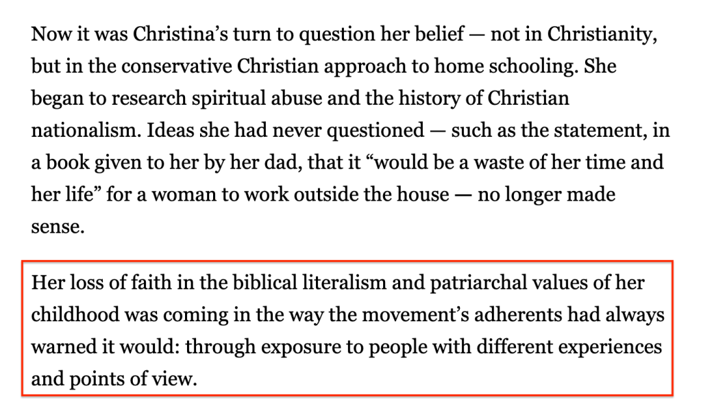 The subset of homeschooled students who often fit inside very conservative and fundamentalist Christian ideology was similar to those experiences while I was a K-12 teacher, but often even more pronounced.