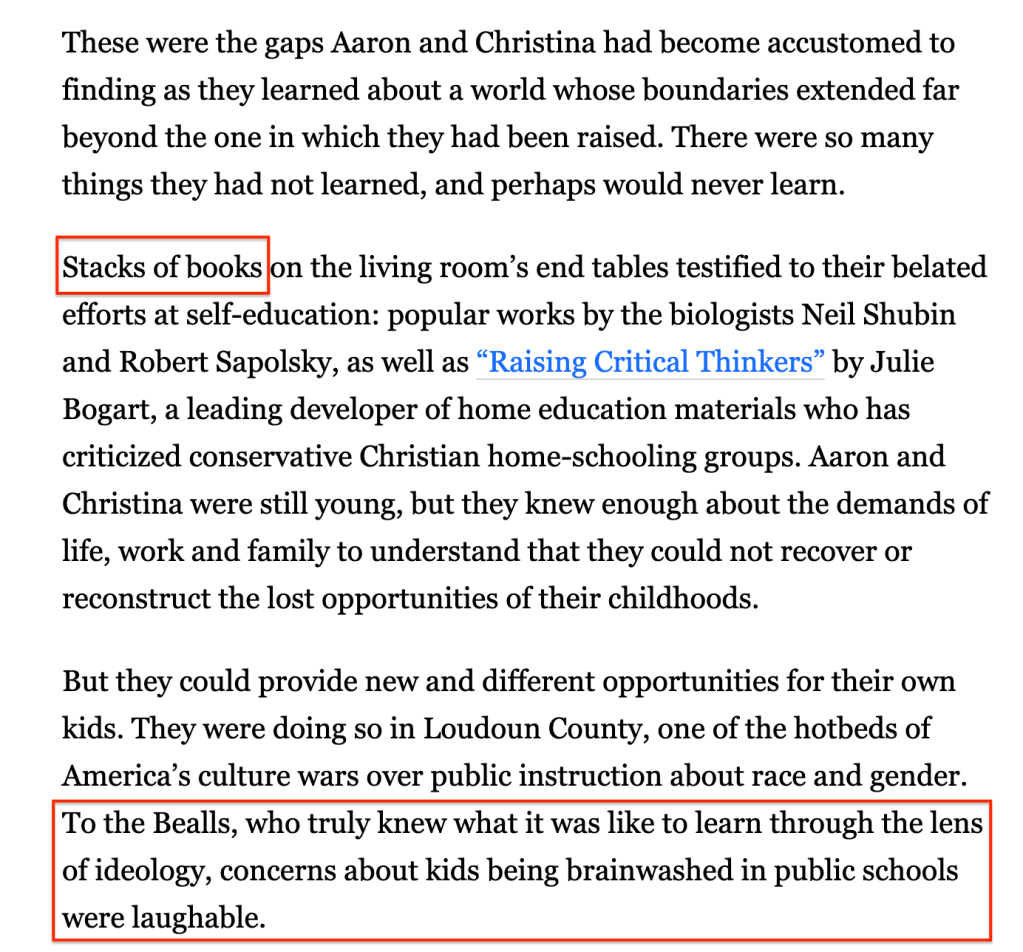 Increasingly over my nearly two decades as a public school teacher, I had homeschooled students transfer into our public school, and as a college professor at a selective liberal arts college, I teach a significant number of homeschooled students.