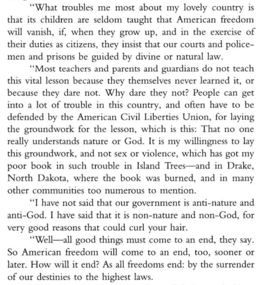 As Vonnegut was apt to quip, like a Christian nation.