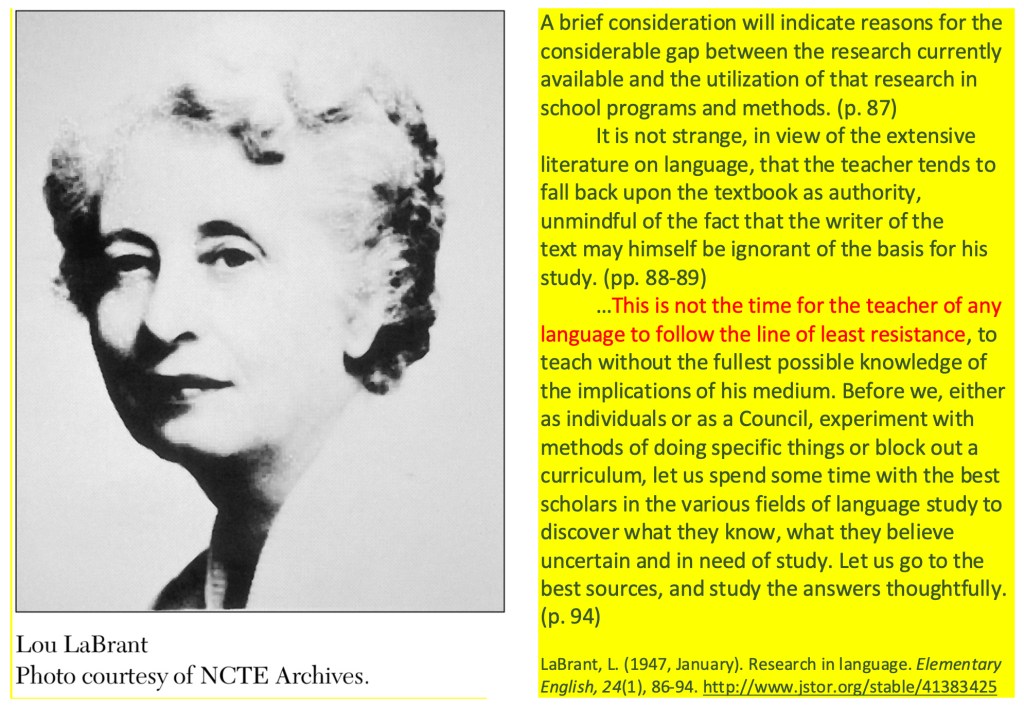 LaBrant (1947) made an assertion about teaching almost 80 years ago that may sound familiar: “A brief consideration will indicate reasons for the considerable gap between the research currently available and the utilization of that research in school programs and methods” (p. 87).