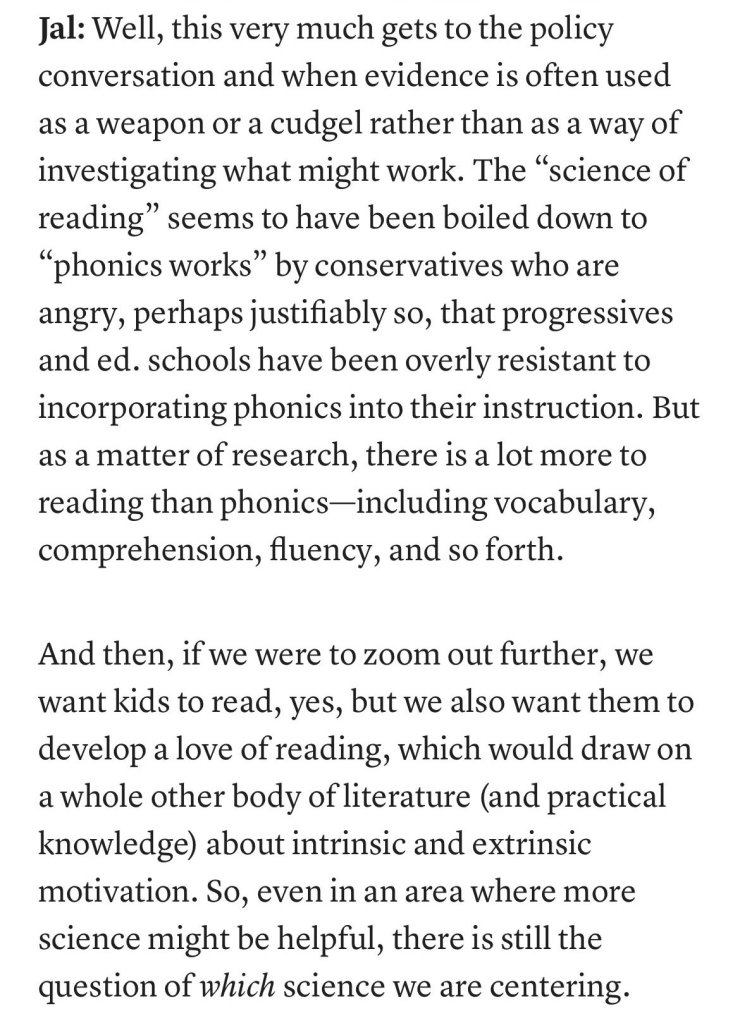 As this discussion shows, another failure of the “science of” movement is the urge to attack caricatures and to oversimplify.