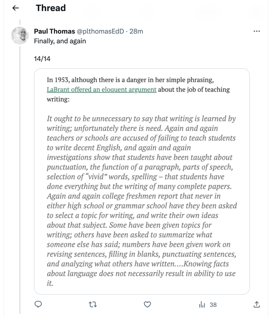 Revisiting LaBrant’s “Writing Is More than Structure” (English Journal, May 1957), P.L. Thomas