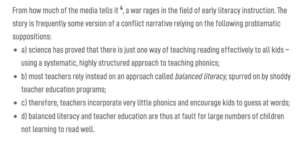 Since the “science of reading” (SOR) has now expanded into a “science of learning” (SOL) movement, the same problems among SOR advocates have appeared among SOL advocates—misinformation and misunderstanding about teaching and learning combined with a bait-and-switch approach that offers anecdotes as if they prove the so-called “science,” for example: