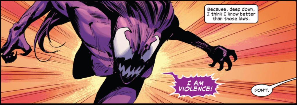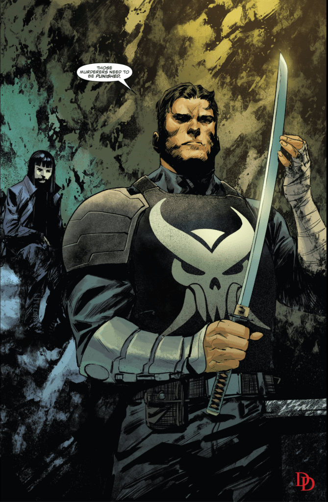 Here, my concerns from issue 5 are greatly tempered although this exchange creates even more tension in the story itself. Similar to the powerful scenes between Frank Castle/The Punisher and Daredevil in S2 of Daredevil, here Bullet calls Daredevil on his idealism: