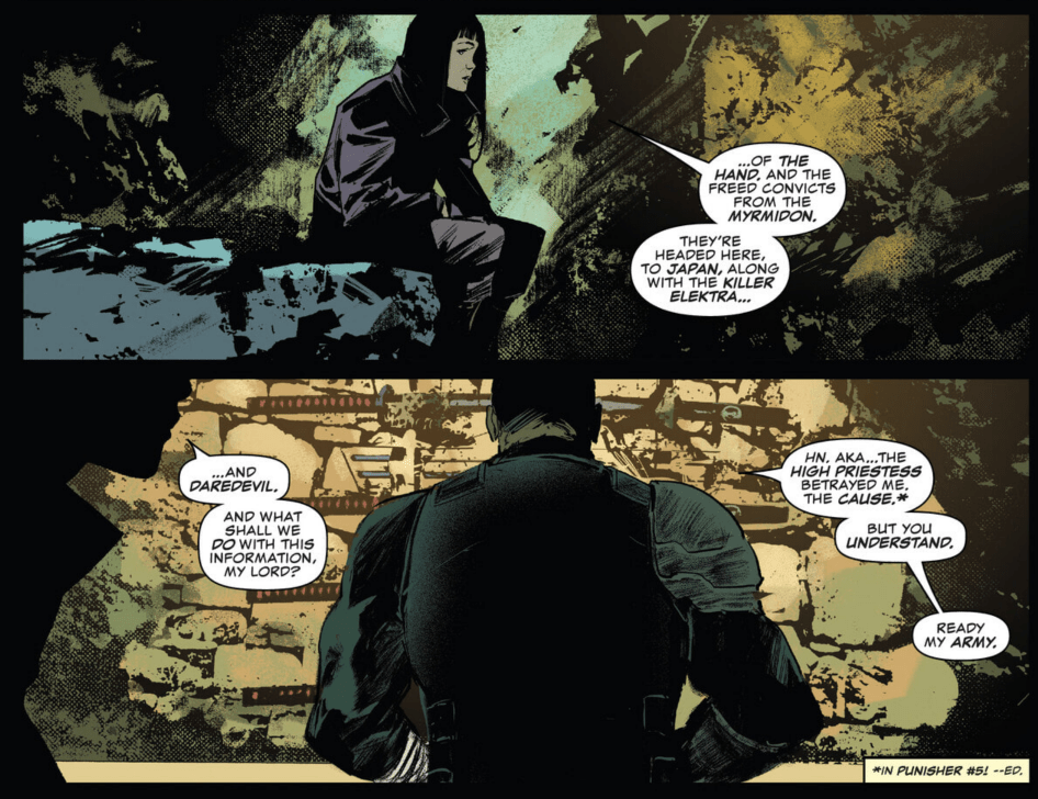 Justice, we must acknowledge, is in the eye of the beholder, and issue 7 appears to be tracking toward a clash between the mission (Daredevil) and the cause (The Punisher).