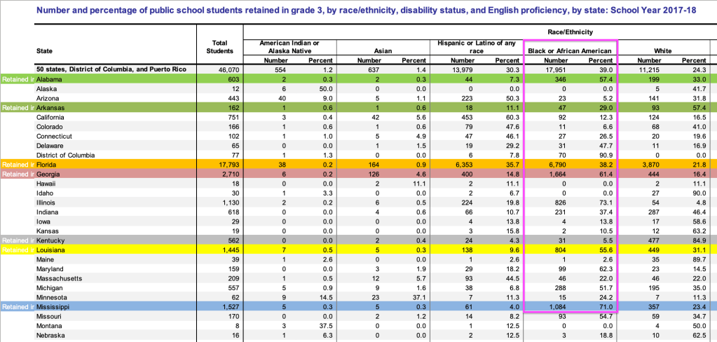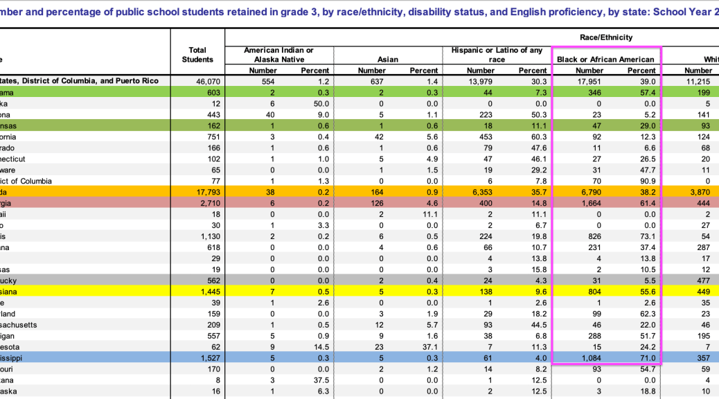 Here are some of the ugly numbers concerning grade retention and its disproportionate impact on Black students: