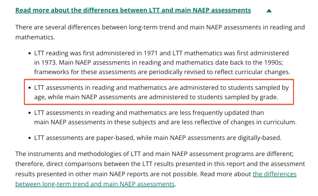 I strongly recommend Tom Loveless exposing a similar problem with misrepresenting and overstating the consequences of NAEP data: Literacy and NAEP Proficient.
