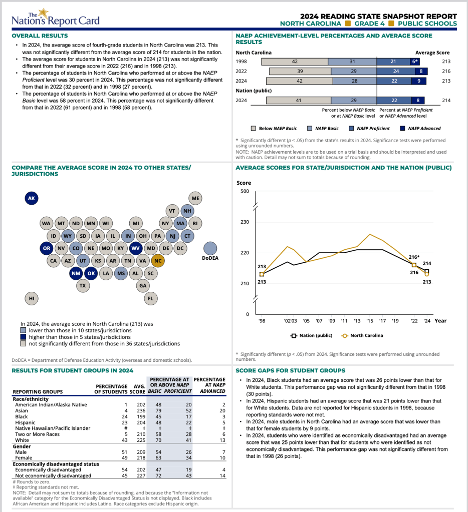 In the broader study, Westall and Cummings found that only states with grade retention in their reading reform achieved increased reading proficiency scores, and those increases faded from elementary to middle school (paralleling the drop from top 25% to bottom 25% of states in NAEP from grade 4 to grade 8 by Mississippi and Florida).