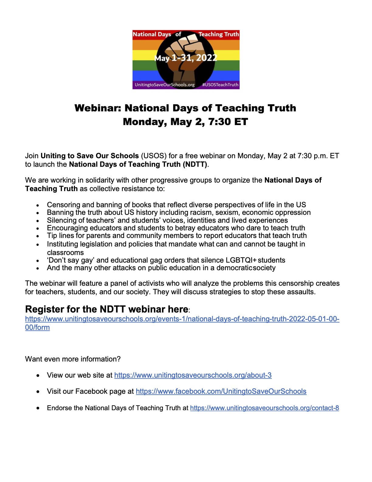 ANNOUNCING: National Days of Teaching Truth